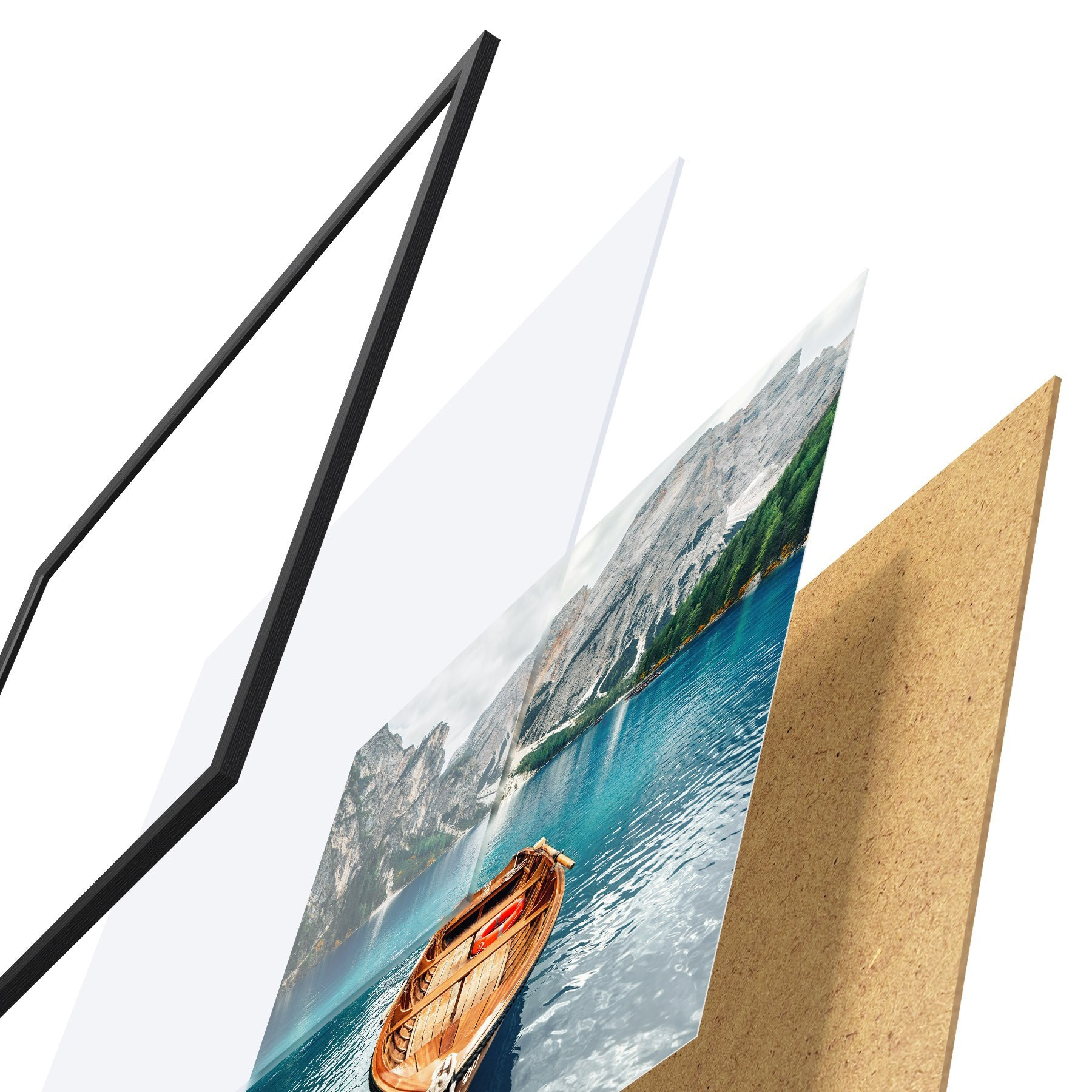 Plakatą sudaro rėmas, pleksiklas, atspausdintas vaizdas ir medžio drožlių plokštės pagrindas. Plakatą galima iš karto pakabinti ant sienos dėl kitoje pusėje esančių laikiklių.