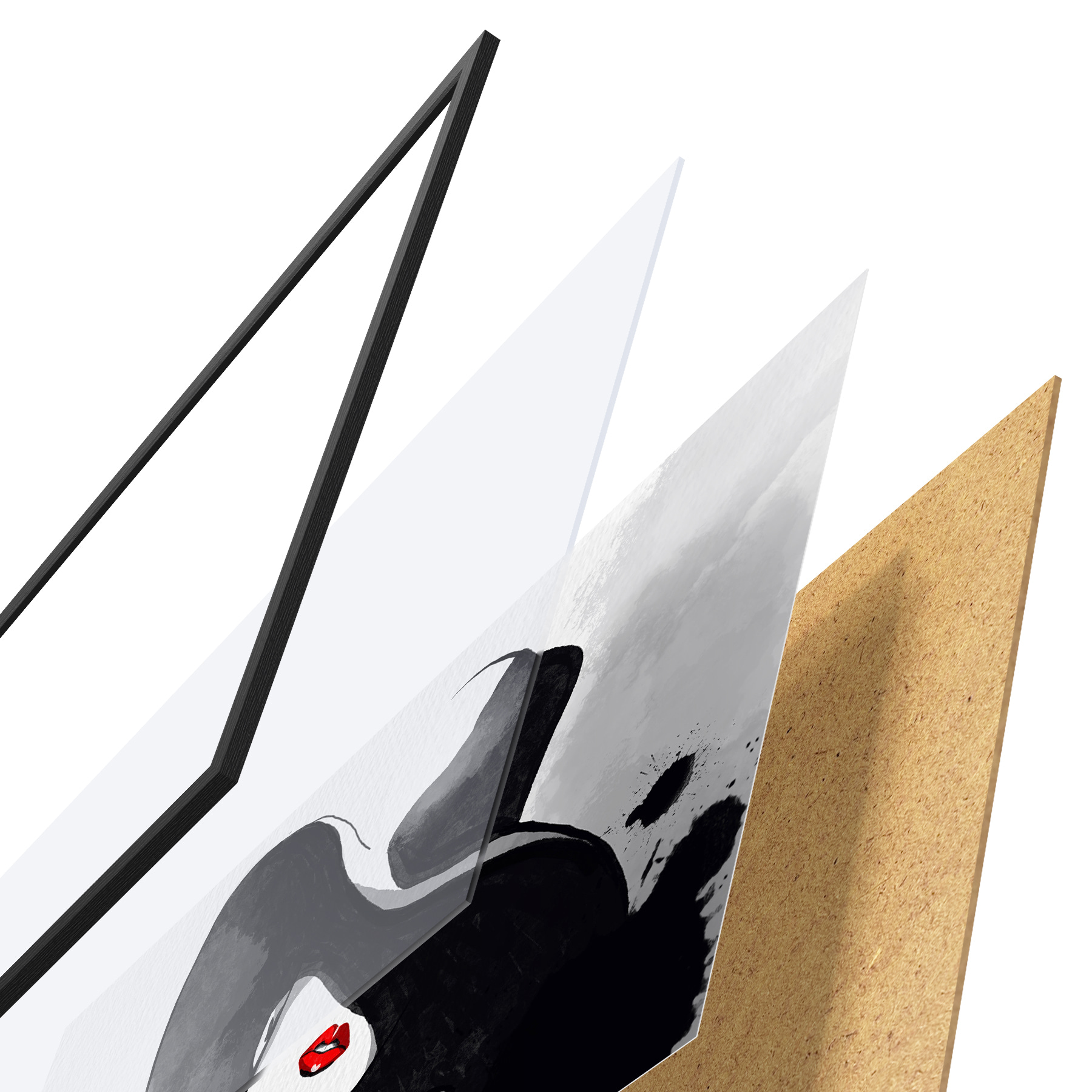 Plakatą sudaro rėmas, pleksiklas, atspausdintas vaizdas ir medžio drožlių plokštės pagrindas. Plakatą galima iš karto pakabinti ant sienos dėl kitoje pusėje esančių laikiklių.