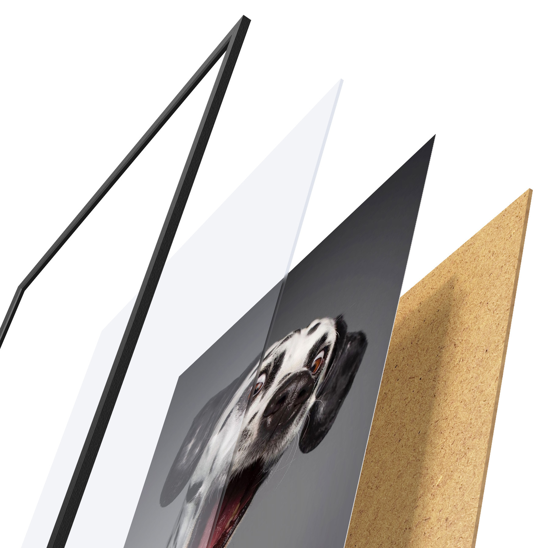 Plakatą sudaro rėmas, pleksiklas, atspausdintas vaizdas ir medžio drožlių plokštės pagrindas. Plakatą galima iš karto pakabinti ant sienos dėl kitoje pusėje esančių laikiklių.