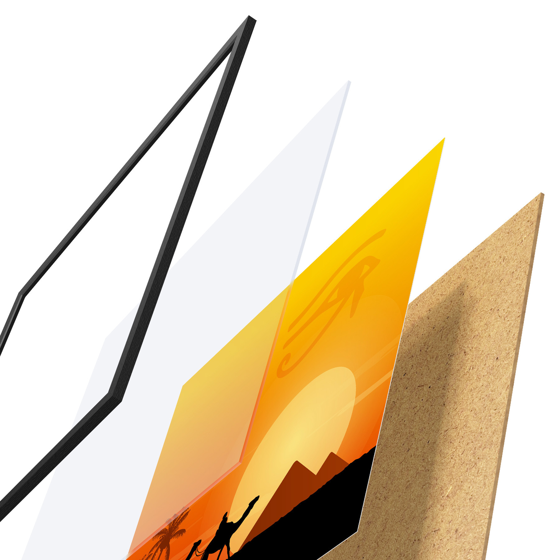 Plakatą sudaro rėmas, pleksiklas, atspausdintas vaizdas ir medžio drožlių plokštės pagrindas. Plakatą galima iš karto pakabinti ant sienos dėl kitoje pusėje esančių laikiklių.