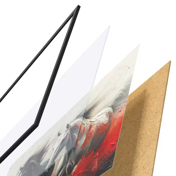 Plakatą sudaro rėmas, pleksiklas, atspausdintas vaizdas ir medžio drožlių plokštės pagrindas. Plakatą galima iš karto pakabinti ant sienos dėl kitoje pusėje esančių laikiklių.