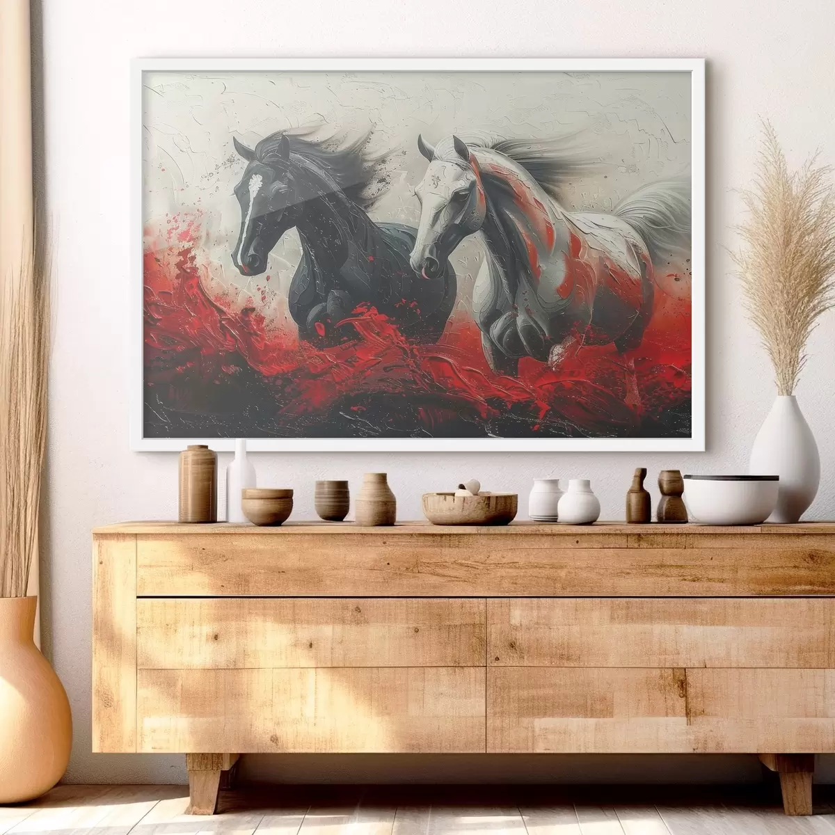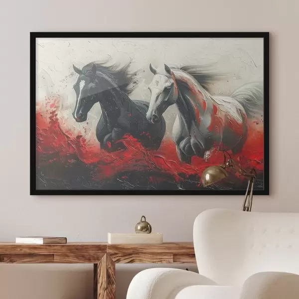 Plakatas Vaizdas bėgančių arklių su raudonais dažais f37769