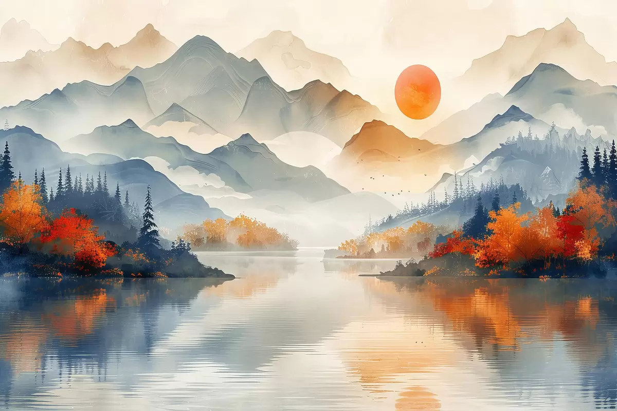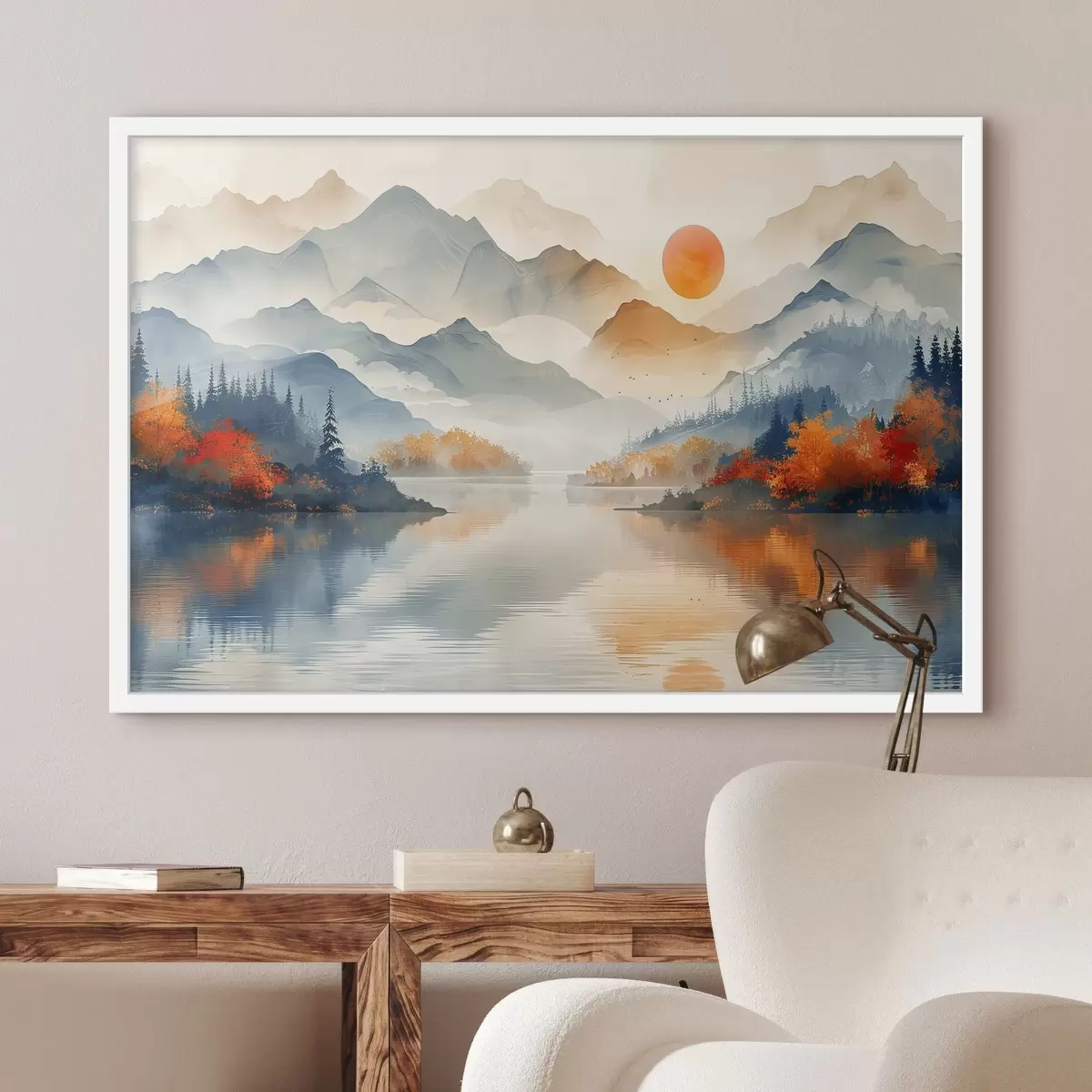 Plakatas Peizažas su kalnais ir vandeniu f37780