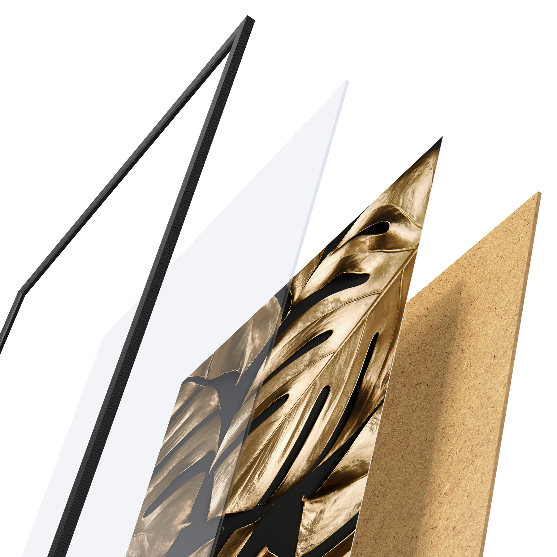 Plakatą sudaro rėmas, pleksiklas, atspausdintas vaizdas ir medžio drožlių plokštės pagrindas. Plakatą galima iš karto pakabinti ant sienos dėl kitoje pusėje esančių laikiklių.