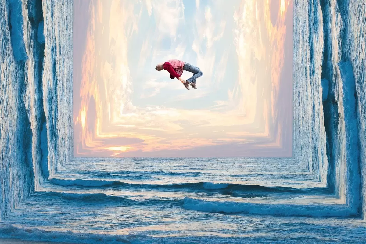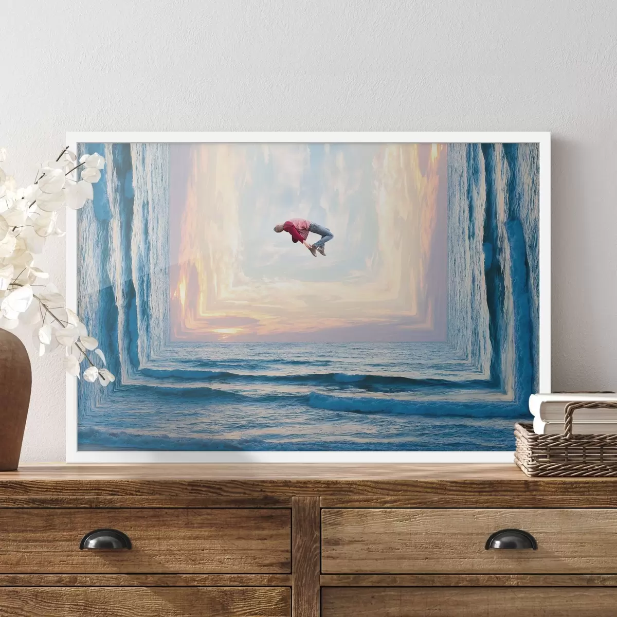 Plakatas Vyras, šokinėjantis ore virš vandens f37786