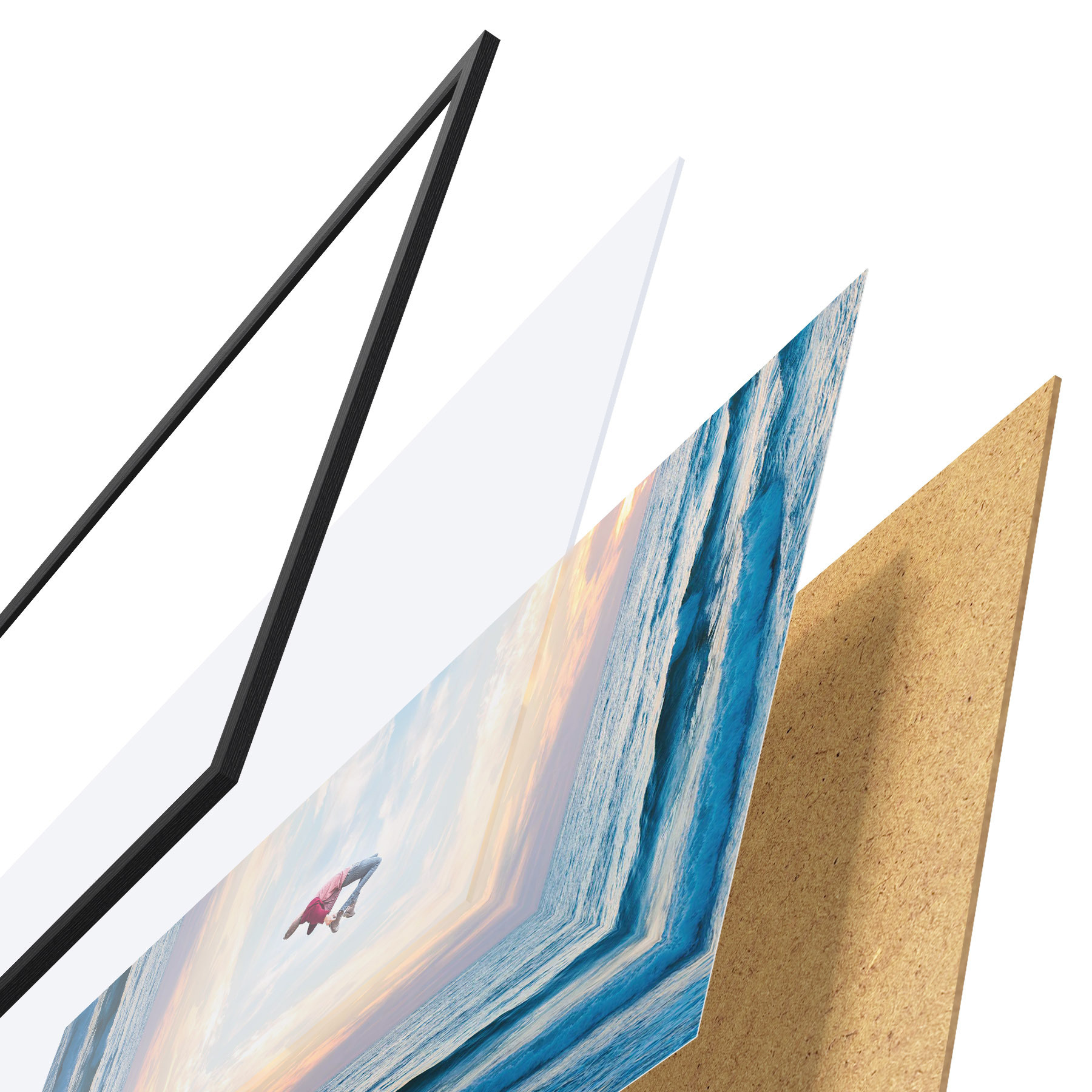 Plakatą sudaro rėmas, pleksiklas, atspausdintas vaizdas ir medžio drožlių plokštės pagrindas. Plakatą galima iš karto pakabinti ant sienos dėl kitoje pusėje esančių laikiklių.