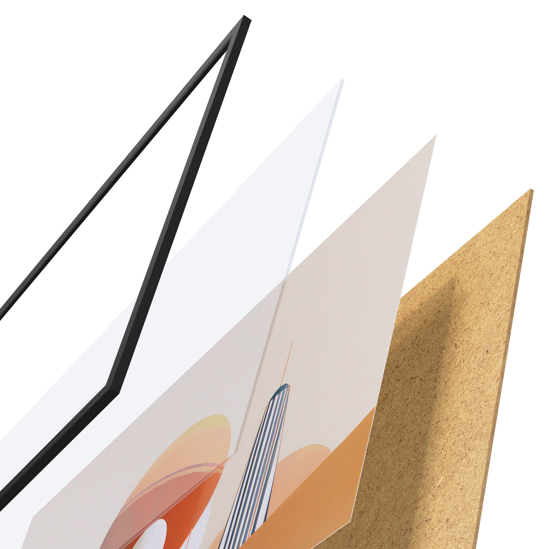 Plakatą sudaro rėmas, pleksiklas, atspausdintas vaizdas ir medžio drožlių plokštės pagrindas. Plakatą galima iš karto pakabinti ant sienos dėl kitoje pusėje esančių laikiklių.
