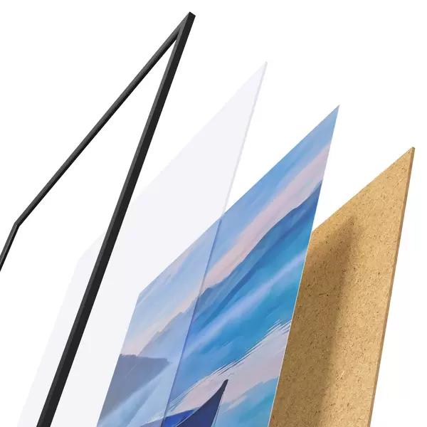 Plakatą sudaro rėmas, pleksiklas, atspausdintas vaizdas ir medžio drožlių plokštės pagrindas. Plakatą galima iš karto pakabinti ant sienos dėl kitoje pusėje esančių laikiklių.