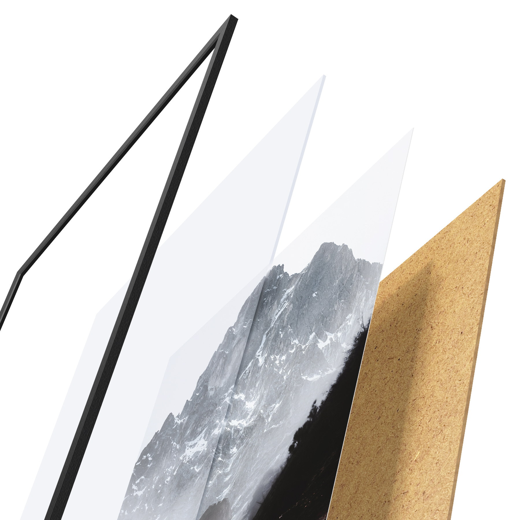 Plakatą sudaro rėmas, pleksiklas, atspausdintas vaizdas ir medžio drožlių plokštės pagrindas. Plakatą galima iš karto pakabinti ant sienos dėl kitoje pusėje esančių laikiklių.