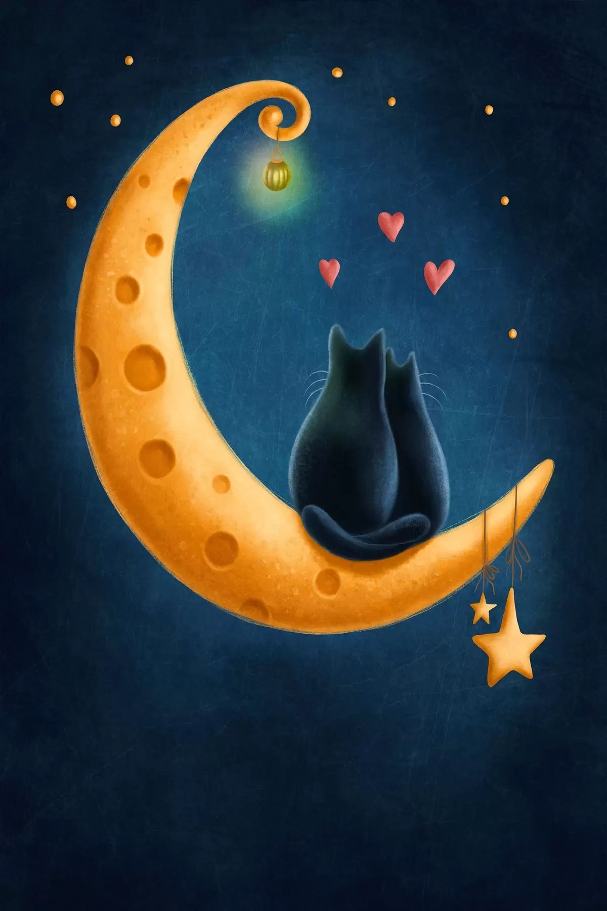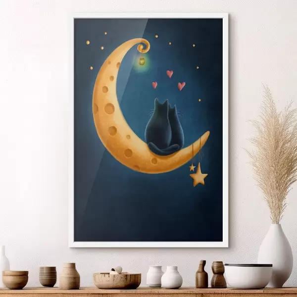 Plakatas Mėnulio šviesoje įsimylėjusios katės f37836