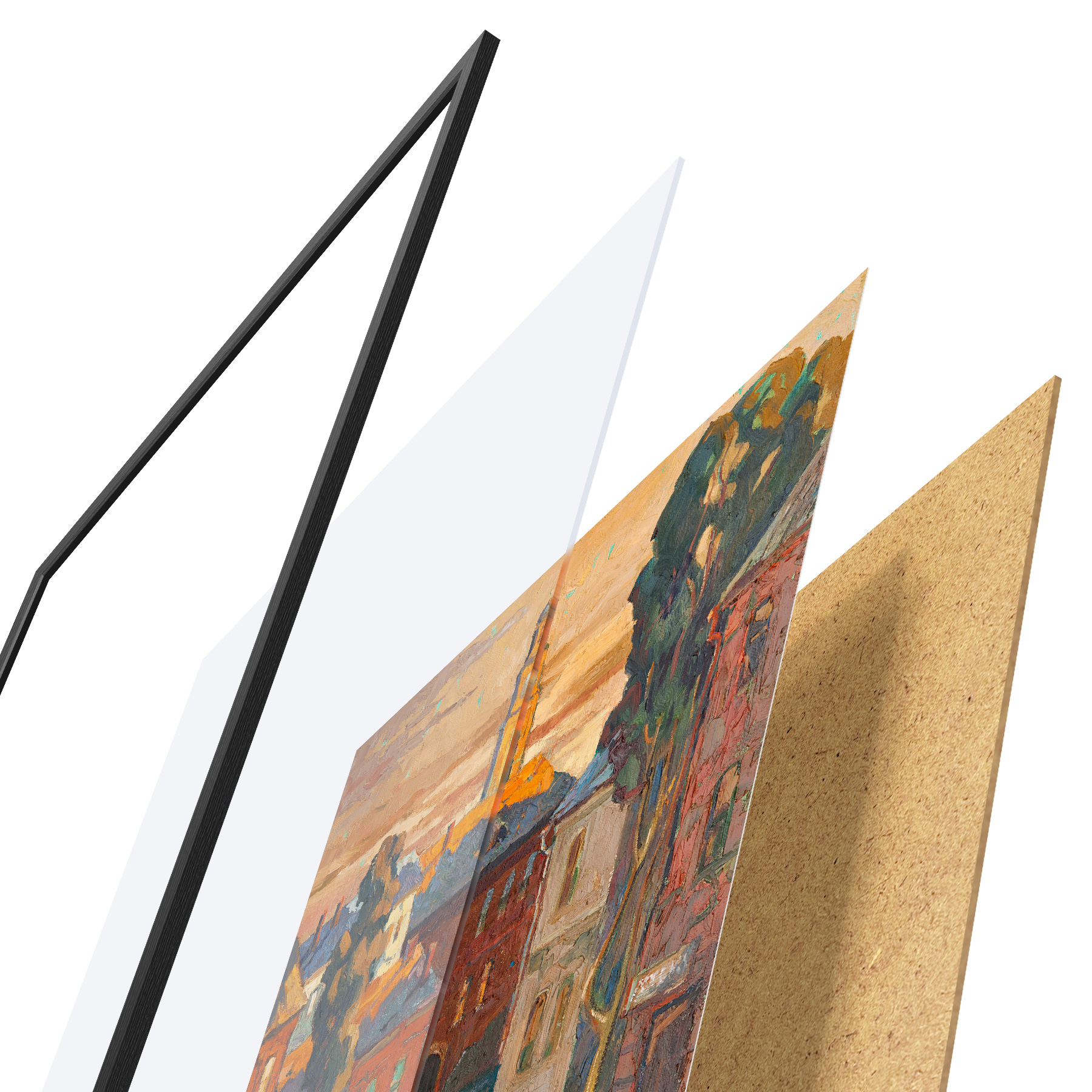 Plakatą sudaro rėmas, pleksiklas, atspausdintas vaizdas ir medžio drožlių plokštės pagrindas. Plakatą galima iš karto pakabinti ant sienos dėl kitoje pusėje esančių laikiklių.