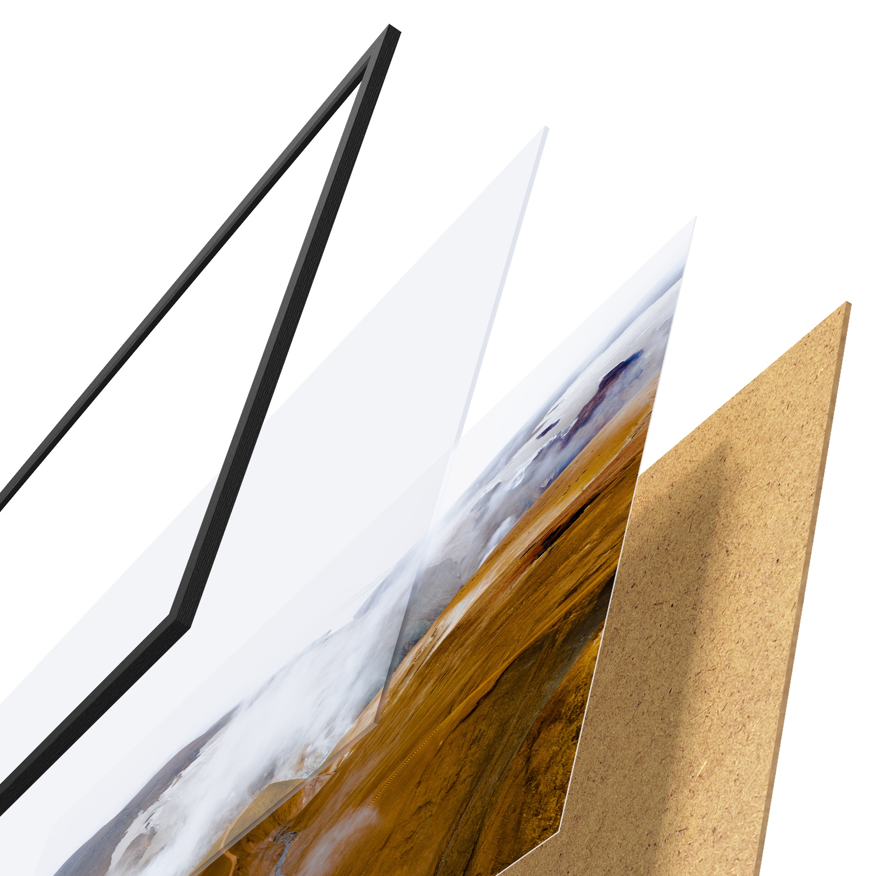 Plakatą sudaro rėmas, pleksiklas, atspausdintas vaizdas ir medžio drožlių plokštės pagrindas. Plakatą galima iš karto pakabinti ant sienos dėl kitoje pusėje esančių laikiklių.