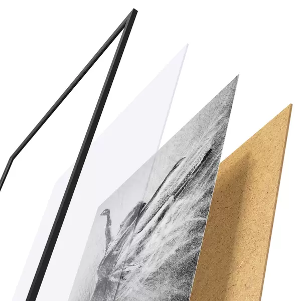 Plakatą sudaro rėmas, pleksiklas, atspausdintas vaizdas ir medžio drožlių plokštės pagrindas. Plakatą galima iš karto pakabinti ant sienos dėl kitoje pusėje esančių laikiklių.