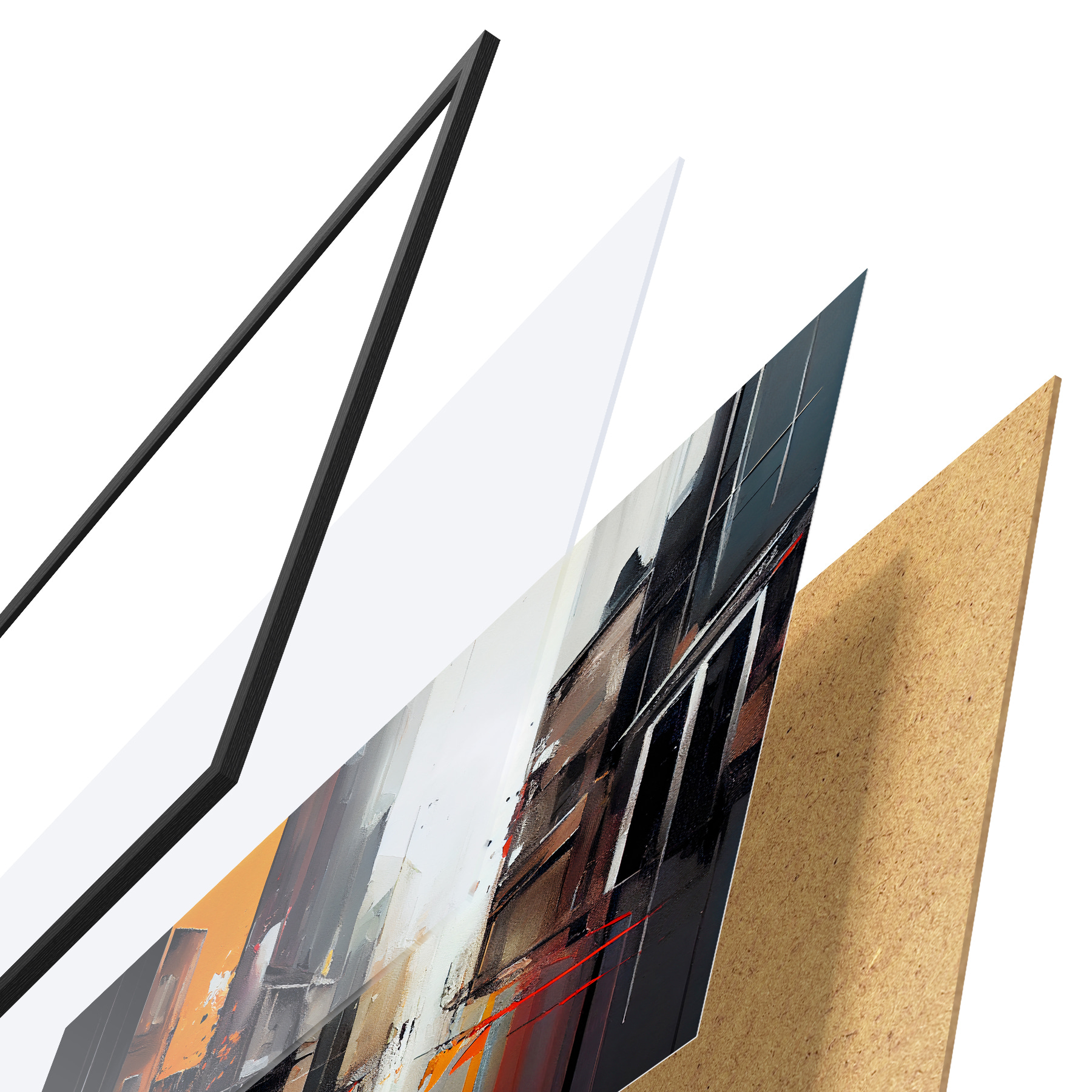 Plakatą sudaro rėmas, pleksiklas, atspausdintas vaizdas ir medžio drožlių plokštės pagrindas. Plakatą galima iš karto pakabinti ant sienos dėl kitoje pusėje esančių laikiklių.
