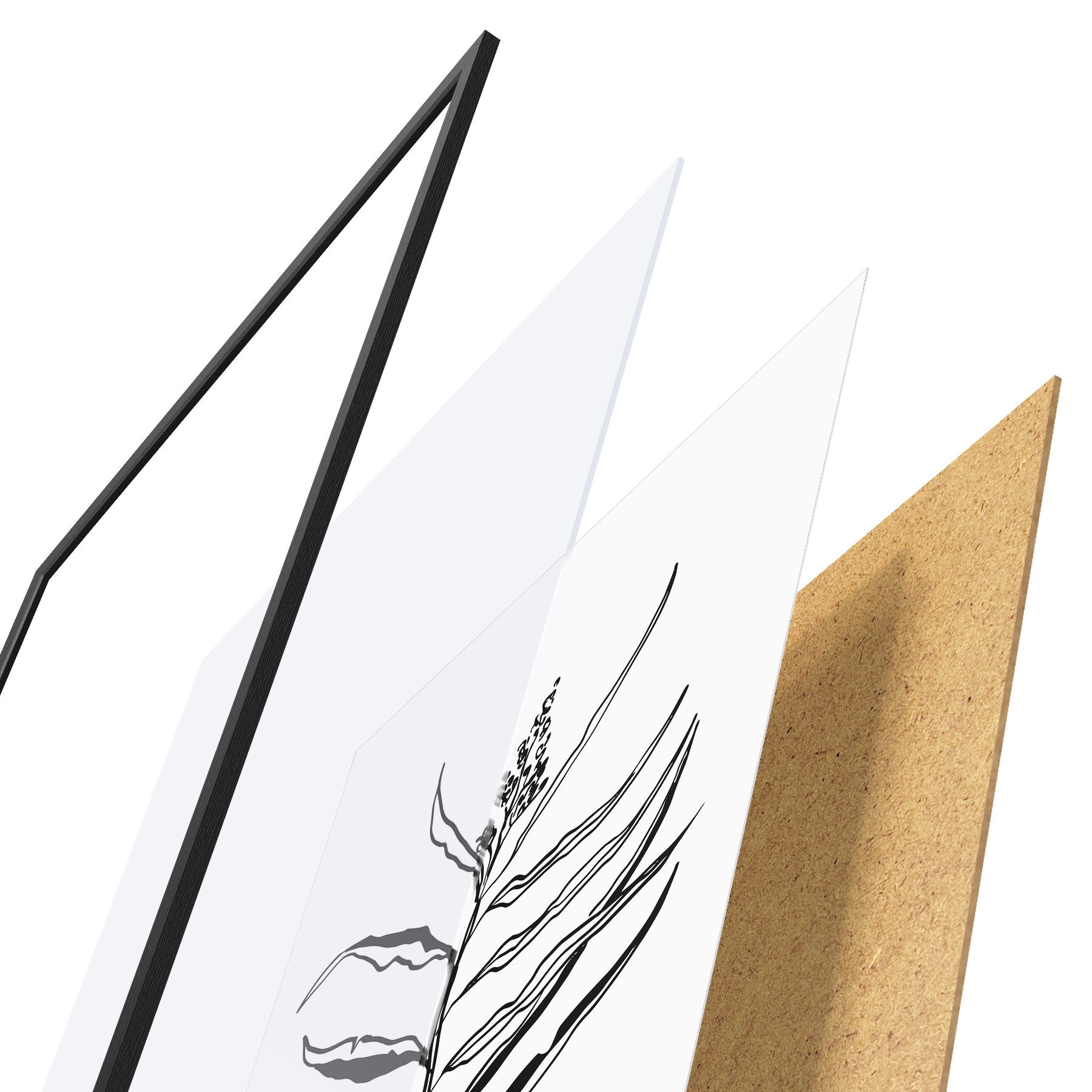 Plakatą sudaro rėmas, pleksiklas, atspausdintas vaizdas ir medžio drožlių plokštės pagrindas. Plakatą galima iš karto pakabinti ant sienos dėl kitoje pusėje esančių laikiklių.