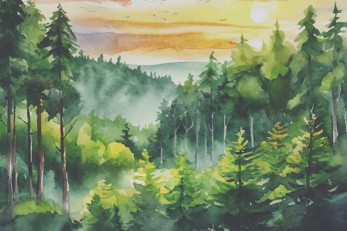 Plakatas Kvapą gniaužiantys miško atspalviai saulėlydžio metu Ne f37952