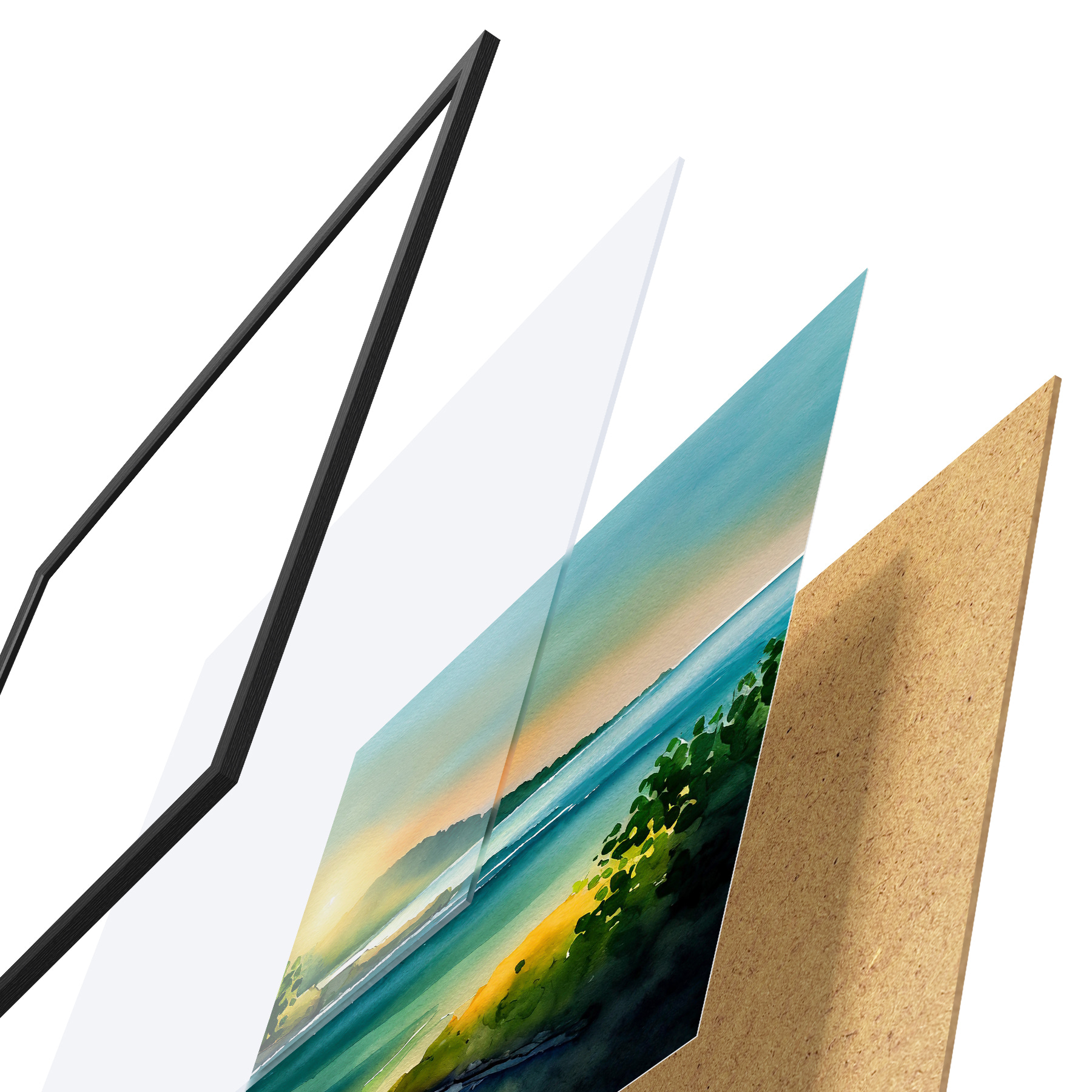 Plakatą sudaro rėmas, pleksiklas, atspausdintas vaizdas ir medžio drožlių plokštės pagrindas. Plakatą galima iš karto pakabinti ant sienos dėl kitoje pusėje esančių laikiklių.