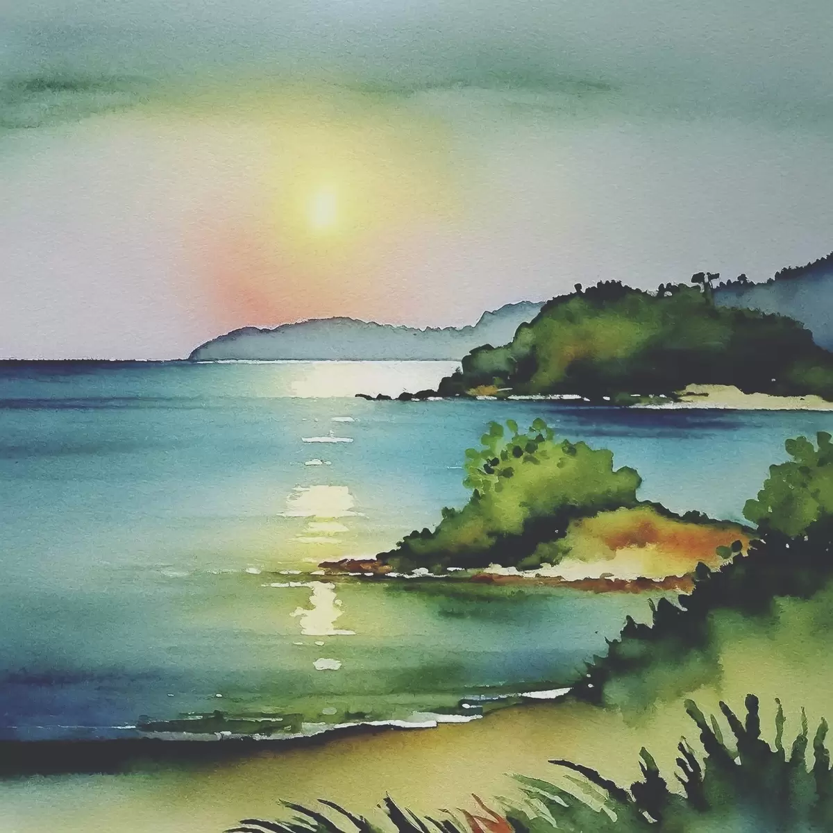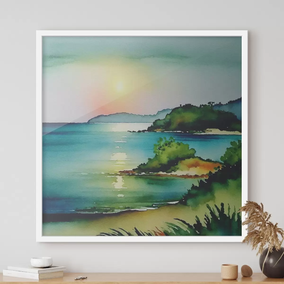 Plakatas Ramus saulėlydis virš ramių vandenų f37956