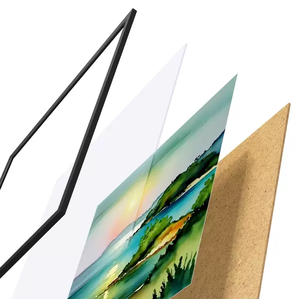 Plakatą sudaro rėmas, pleksiklas, atspausdintas vaizdas ir medžio drožlių plokštės pagrindas. Plakatą galima iš karto pakabinti ant sienos dėl kitoje pusėje esančių laikiklių.