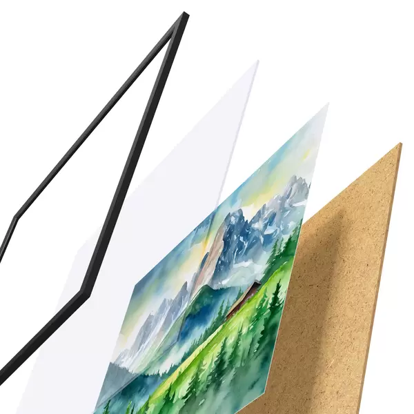 Plakatą sudaro rėmas, pleksiklas, atspausdintas vaizdas ir medžio drožlių plokštės pagrindas. Plakatą galima iš karto pakabinti ant sienos dėl kitoje pusėje esančių laikiklių.
