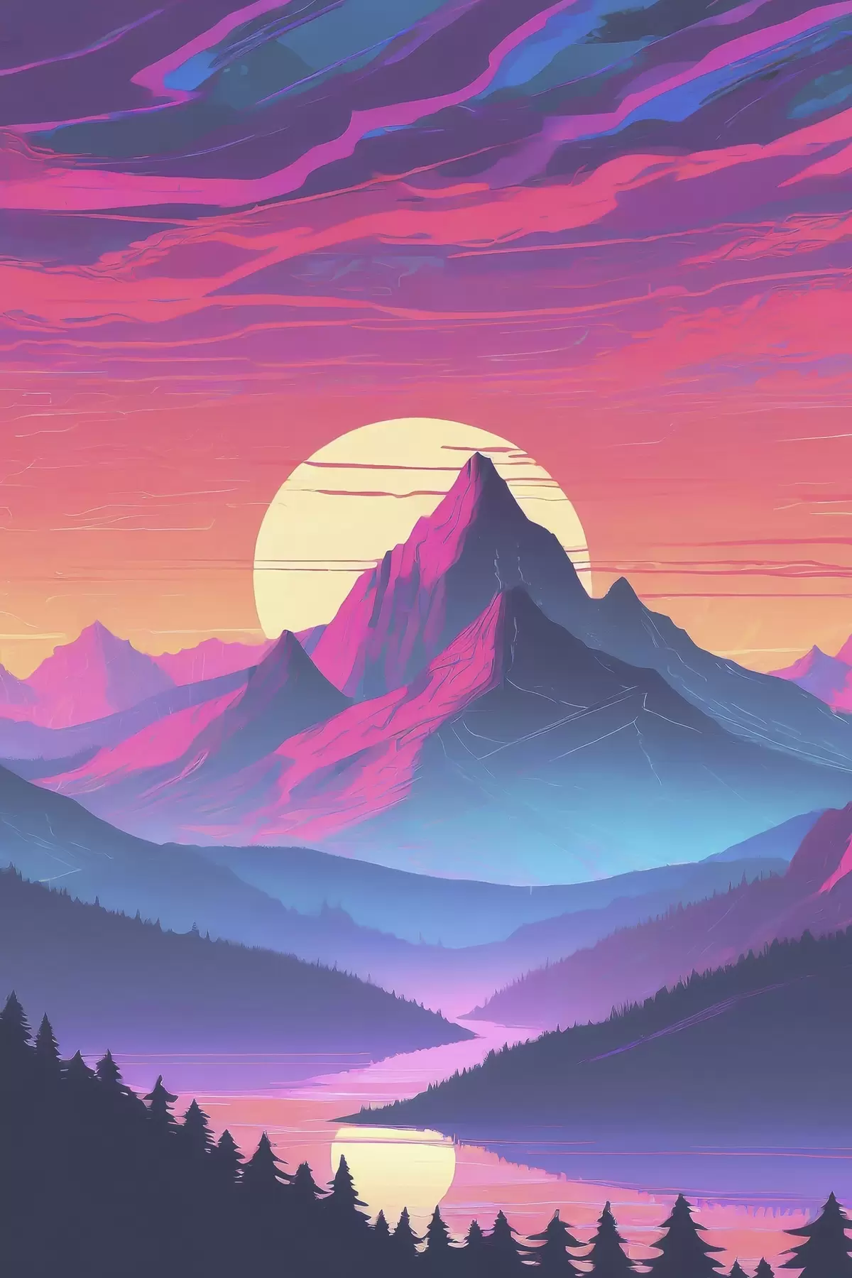 Plakatas Ramūs kalnai po spalvingu dangumi f38003