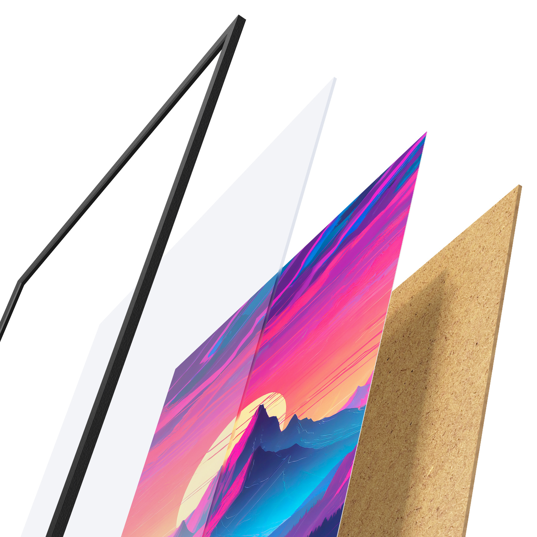 Plakatą sudaro rėmas, pleksiklas, atspausdintas vaizdas ir medžio drožlių plokštės pagrindas. Plakatą galima iš karto pakabinti ant sienos dėl kitoje pusėje esančių laikiklių.
