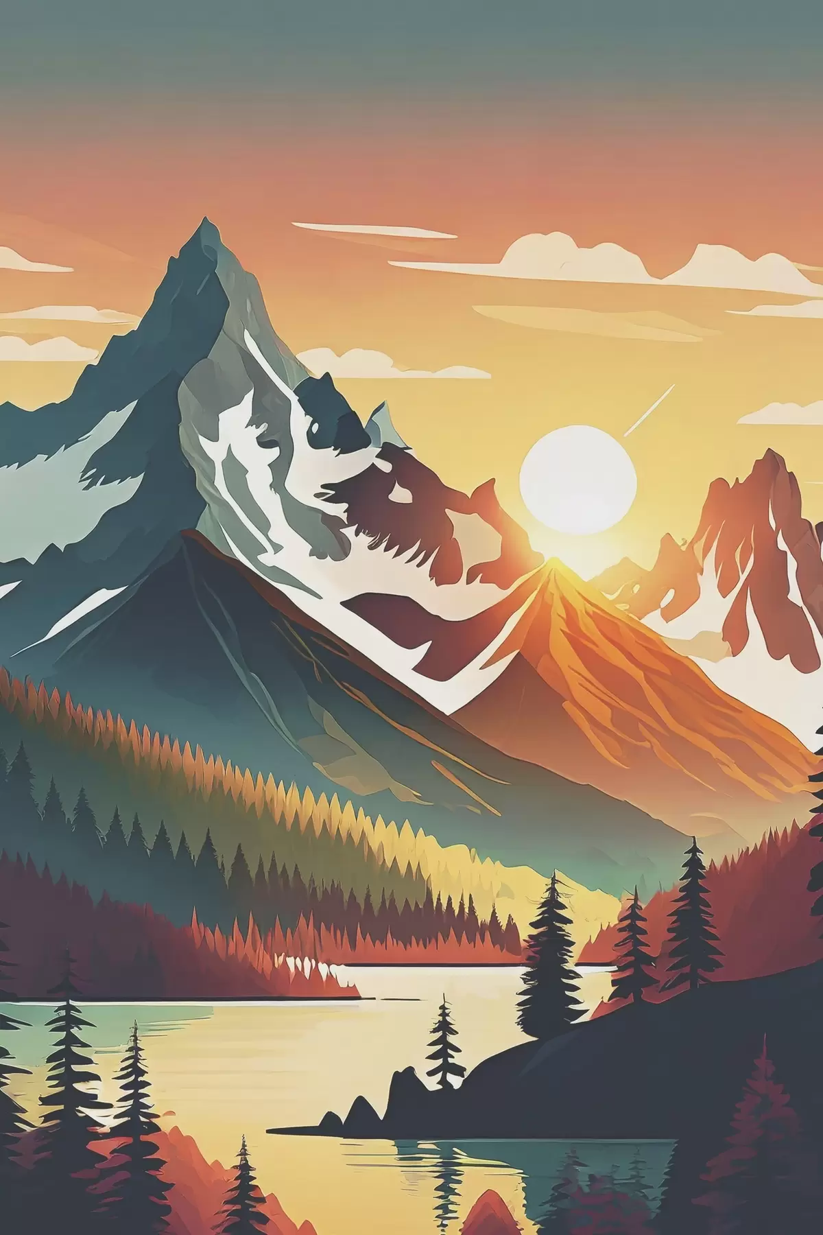 Plakatas Didingi kalnai saulėlydžio spindesyje f38006