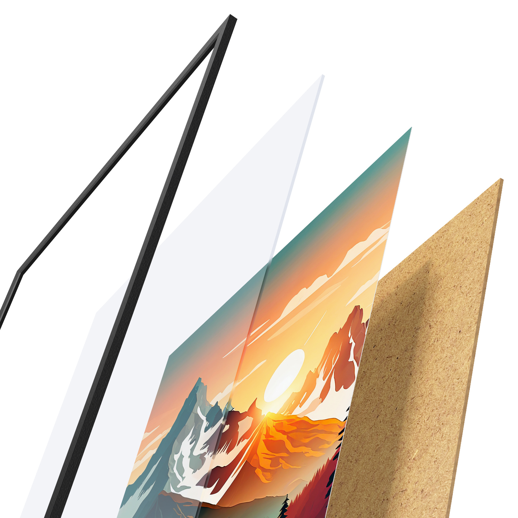 Plakatą sudaro rėmas, pleksiklas, atspausdintas vaizdas ir medžio drožlių plokštės pagrindas. Plakatą galima iš karto pakabinti ant sienos dėl kitoje pusėje esančių laikiklių.