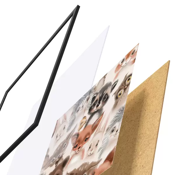 Plakatą sudaro rėmas, pleksiklas, atspausdintas vaizdas ir medžio drožlių plokštės pagrindas. Plakatą galima iš karto pakabinti ant sienos dėl kitoje pusėje esančių laikiklių.