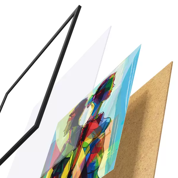 Plakatą sudaro rėmas, pleksiklas, atspausdintas vaizdas ir medžio drožlių plokštės pagrindas. Plakatą galima iš karto pakabinti ant sienos dėl kitoje pusėje esančių laikiklių.