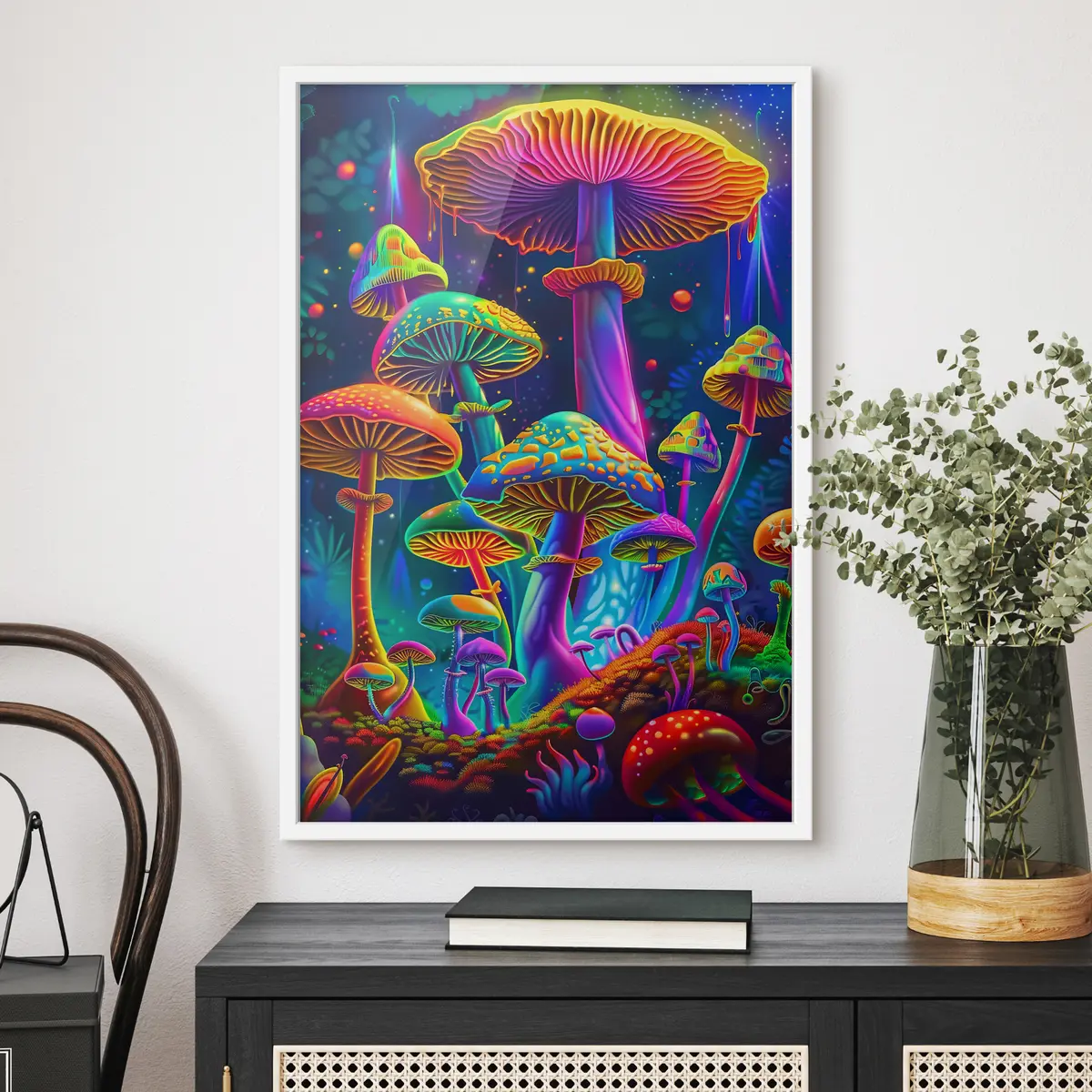 Plakatas Įvairiaspalviai grybai Ne f38049