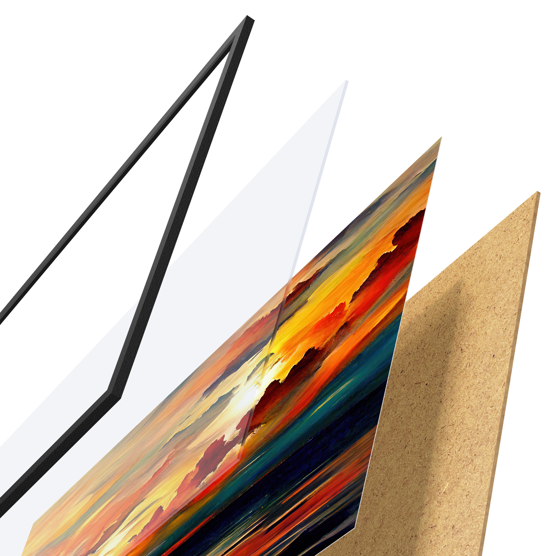 Plakatą sudaro rėmas, pleksiklas, atspausdintas vaizdas ir medžio drožlių plokštės pagrindas. Plakatą galima iš karto pakabinti ant sienos dėl kitoje pusėje esančių laikiklių.