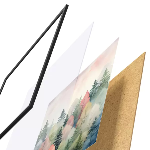 Plakatą sudaro rėmas, pleksiklas, atspausdintas vaizdas ir medžio drožlių plokštės pagrindas. Plakatą galima iš karto pakabinti ant sienos dėl kitoje pusėje esančių laikiklių.