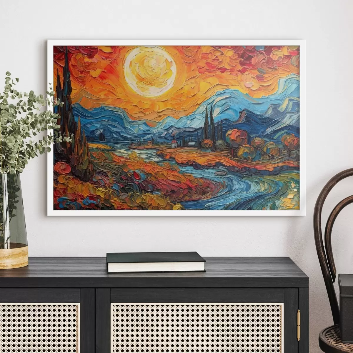Plakatas Ryškus saulėlydis virš ramaus kraštovaizdžio f38057