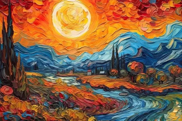 Plakatas Ryškus saulėlydis virš ramaus kraštovaizdžio f38057