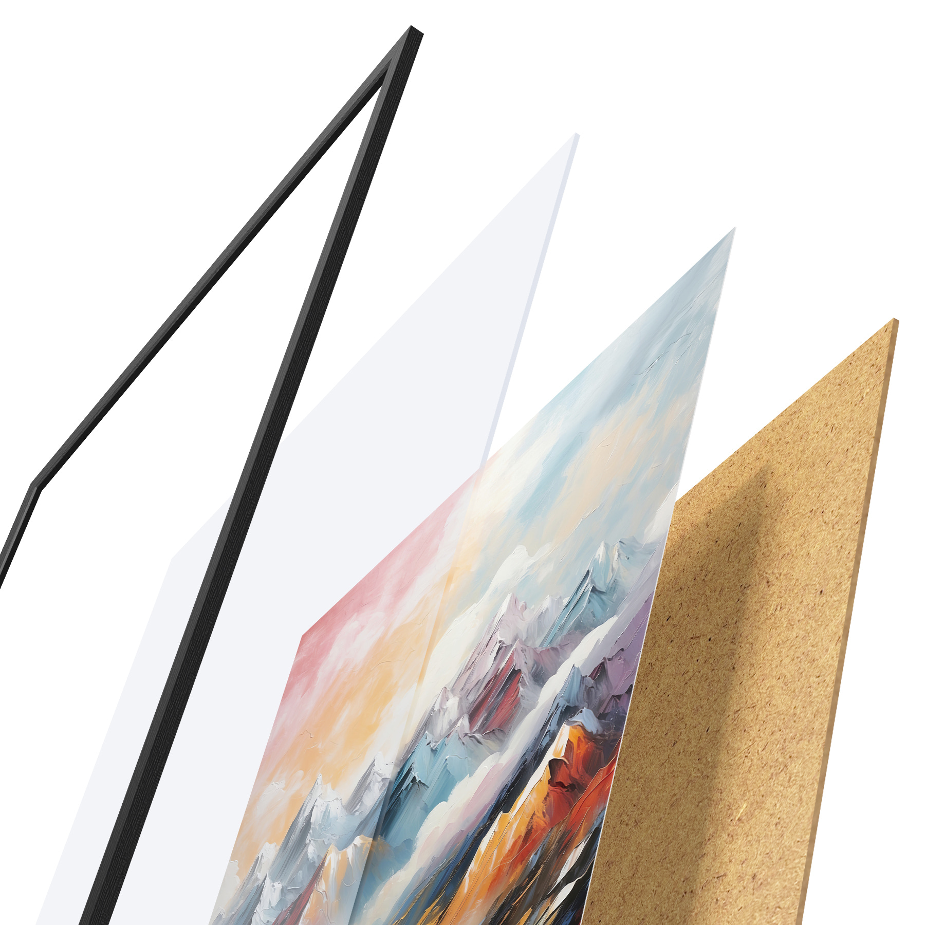 Plakatą sudaro rėmas, pleksiklas, atspausdintas vaizdas ir medžio drožlių plokštės pagrindas. Plakatą galima iš karto pakabinti ant sienos dėl kitoje pusėje esančių laikiklių.