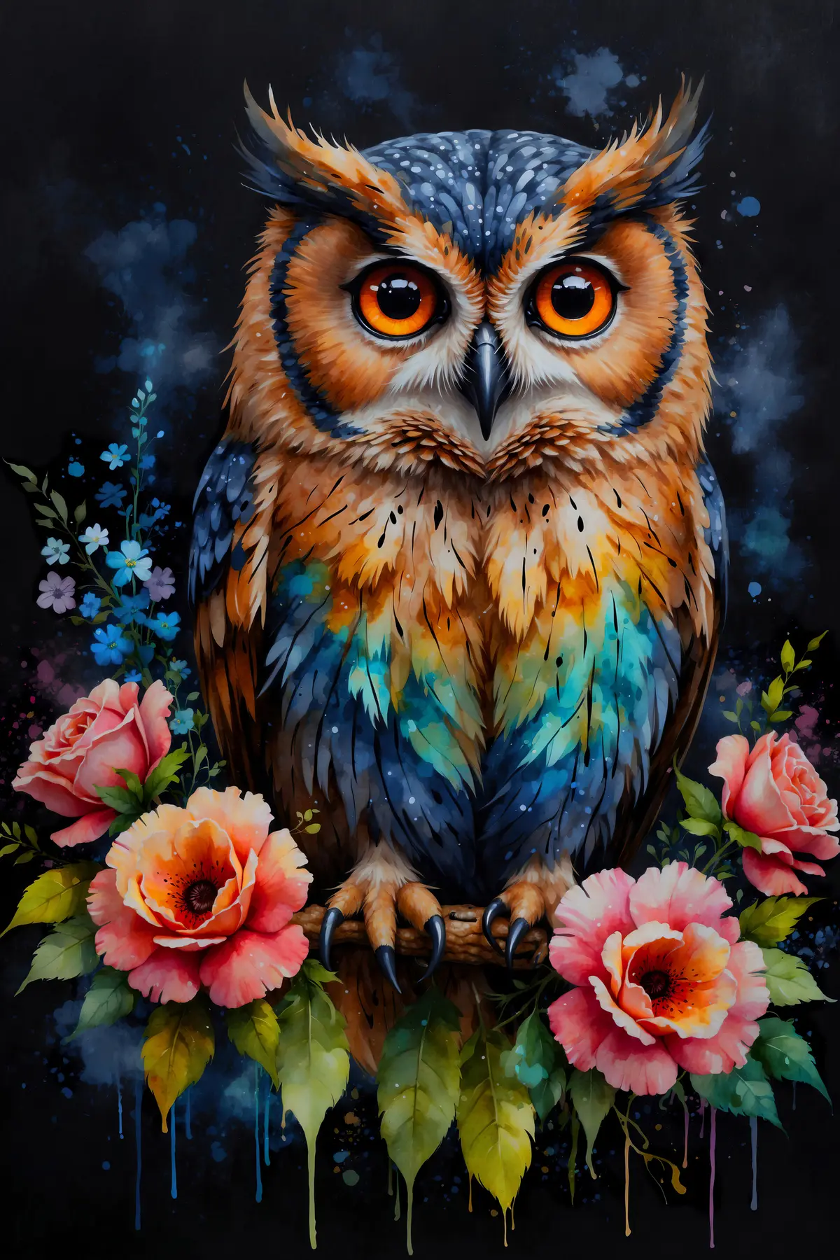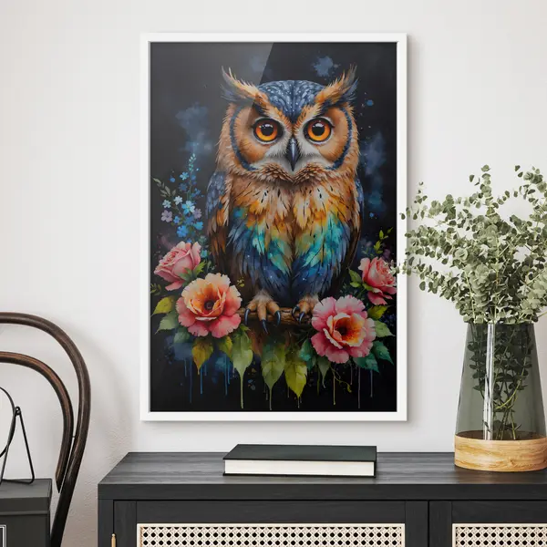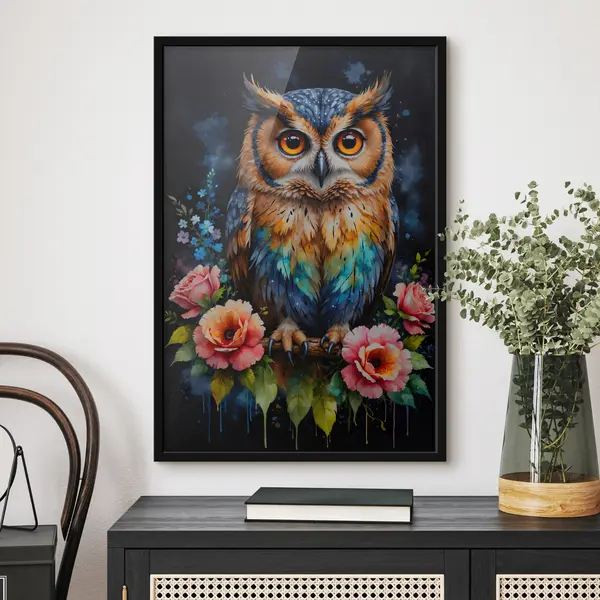 Plakatas Pelėda su gėlėmis f38066