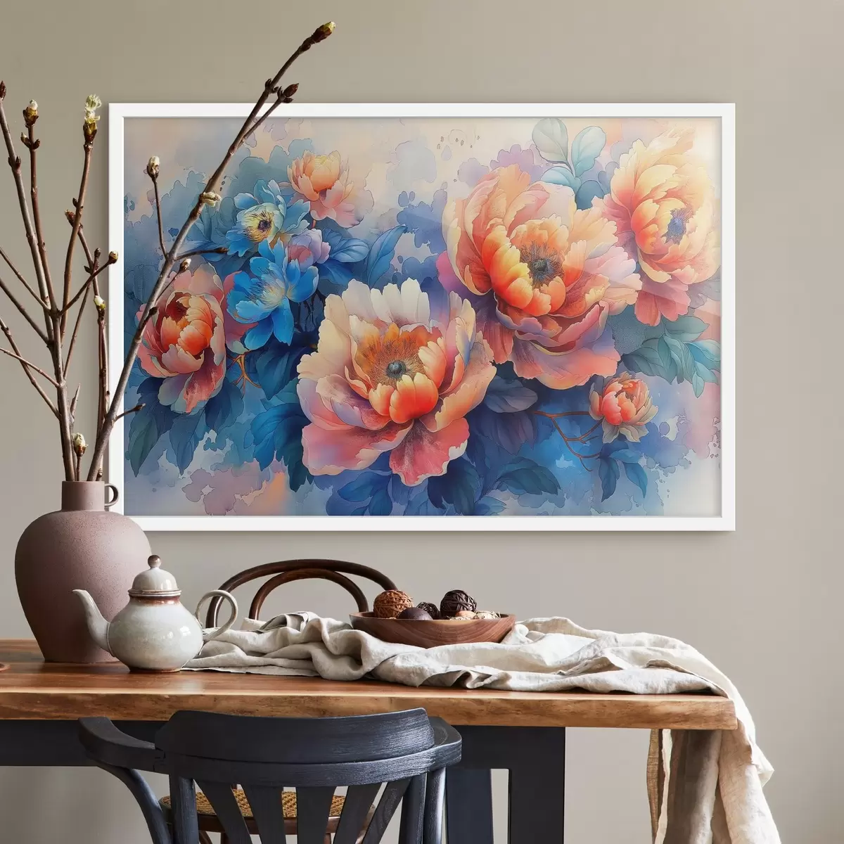 Plakatas Gėlių vaizdas mėlyname fone f38088