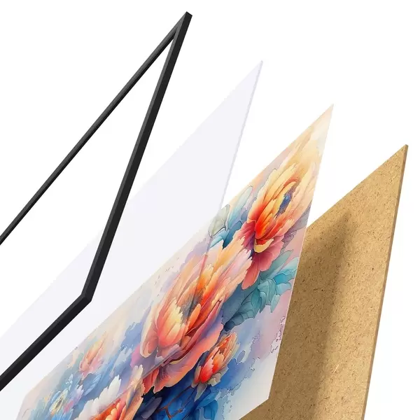 Plakatą sudaro rėmas, pleksiklas, atspausdintas vaizdas ir medžio drožlių plokštės pagrindas. Plakatą galima iš karto pakabinti ant sienos dėl kitoje pusėje esančių laikiklių.