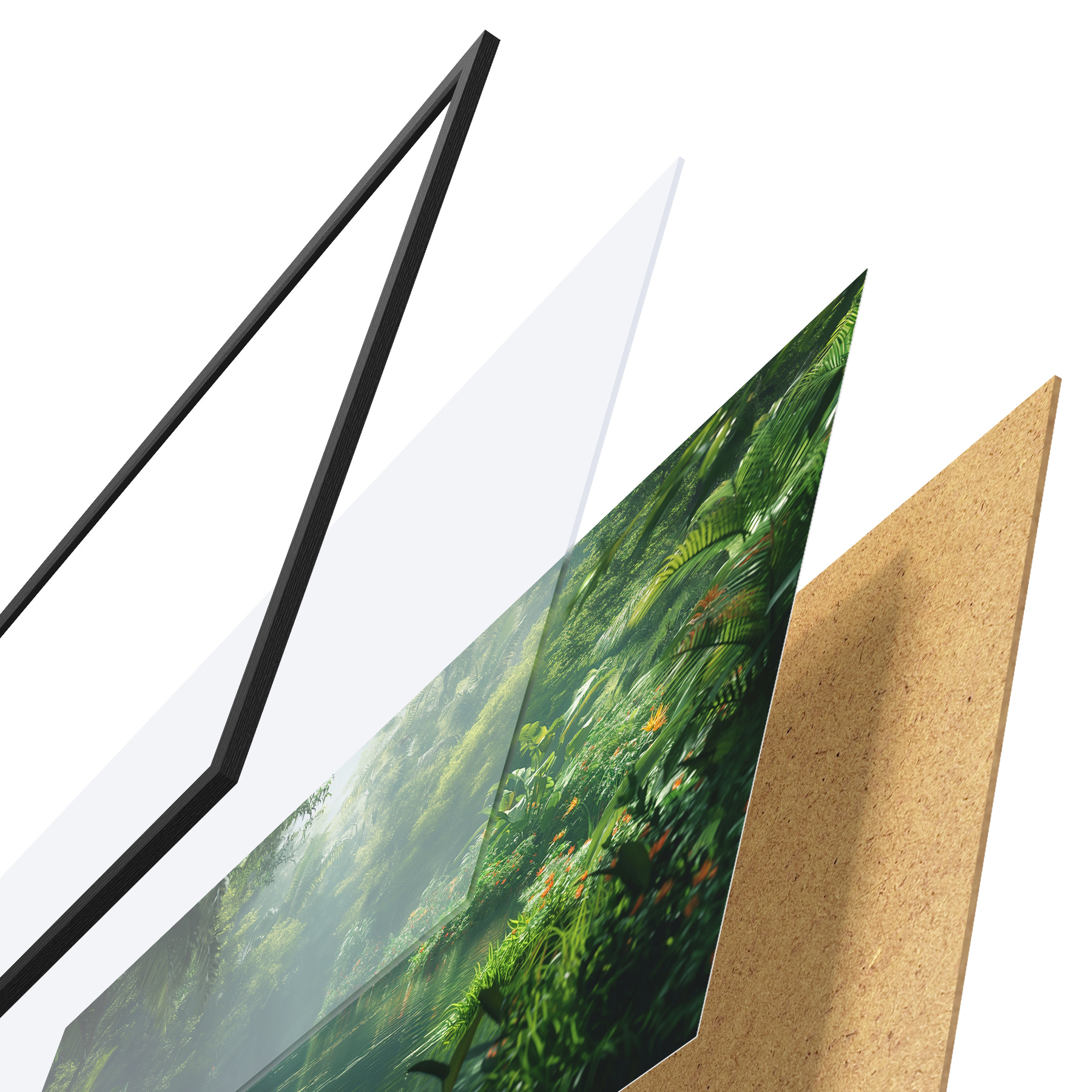 Plakatą sudaro rėmas, pleksiklas, atspausdintas vaizdas ir medžio drožlių plokštės pagrindas. Plakatą galima iš karto pakabinti ant sienos dėl kitoje pusėje esančių laikiklių.