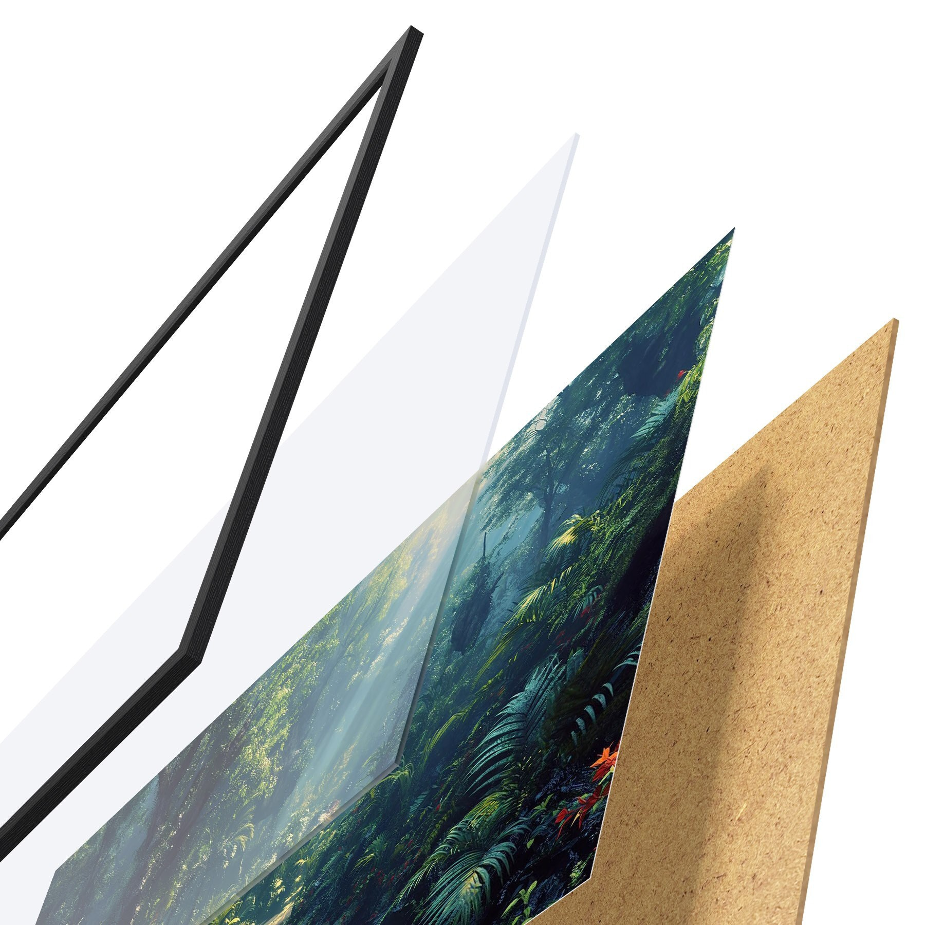 Plakatą sudaro rėmas, pleksiklas, atspausdintas vaizdas ir medžio drožlių plokštės pagrindas. Plakatą galima iš karto pakabinti ant sienos dėl kitoje pusėje esančių laikiklių.