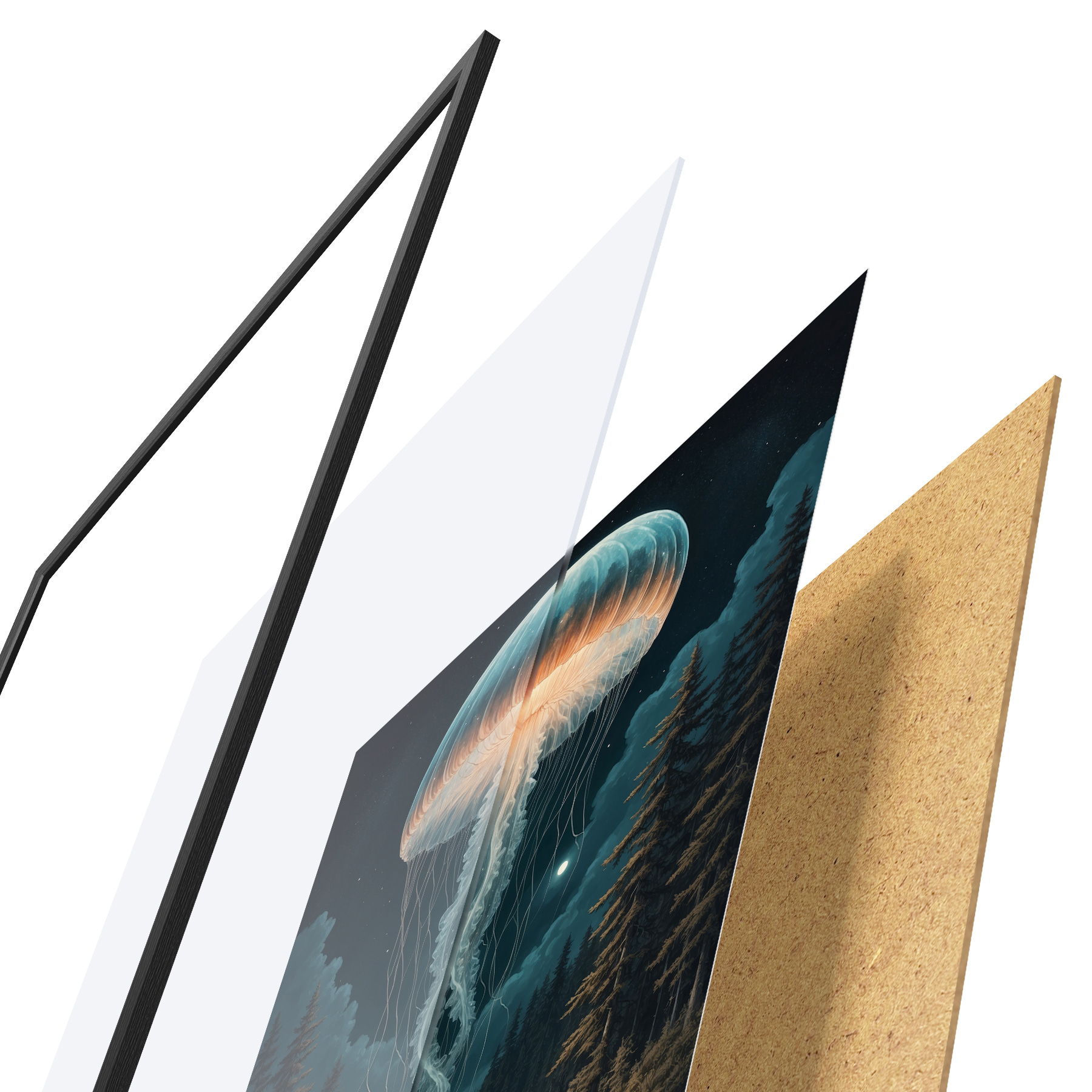 Plakatą sudaro rėmas, pleksiklas, atspausdintas vaizdas ir medžio drožlių plokštės pagrindas. Plakatą galima iš karto pakabinti ant sienos dėl kitoje pusėje esančių laikiklių.