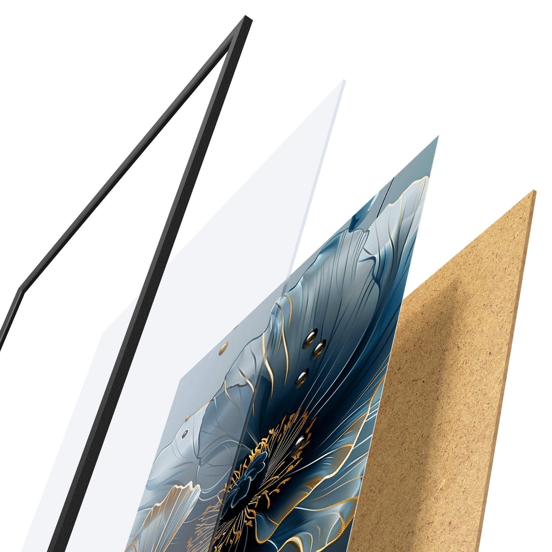 Plakatą sudaro rėmas, pleksiklas, atspausdintas vaizdas ir medžio drožlių plokštės pagrindas. Plakatą galima iš karto pakabinti ant sienos dėl kitoje pusėje esančių laikiklių.
