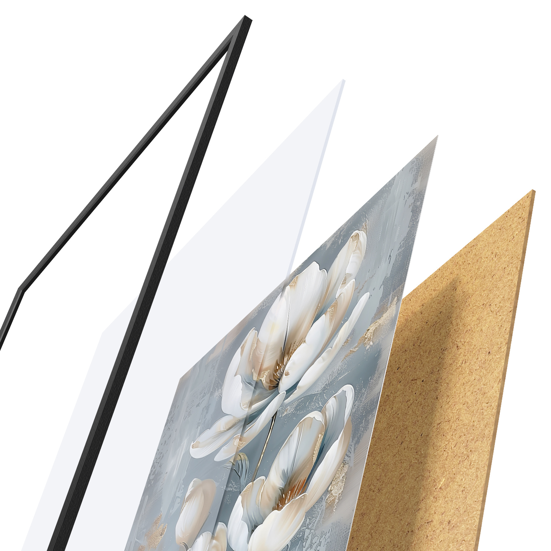 Plakatą sudaro rėmas, pleksiklas, atspausdintas vaizdas ir medžio drožlių plokštės pagrindas. Plakatą galima iš karto pakabinti ant sienos dėl kitoje pusėje esančių laikiklių.