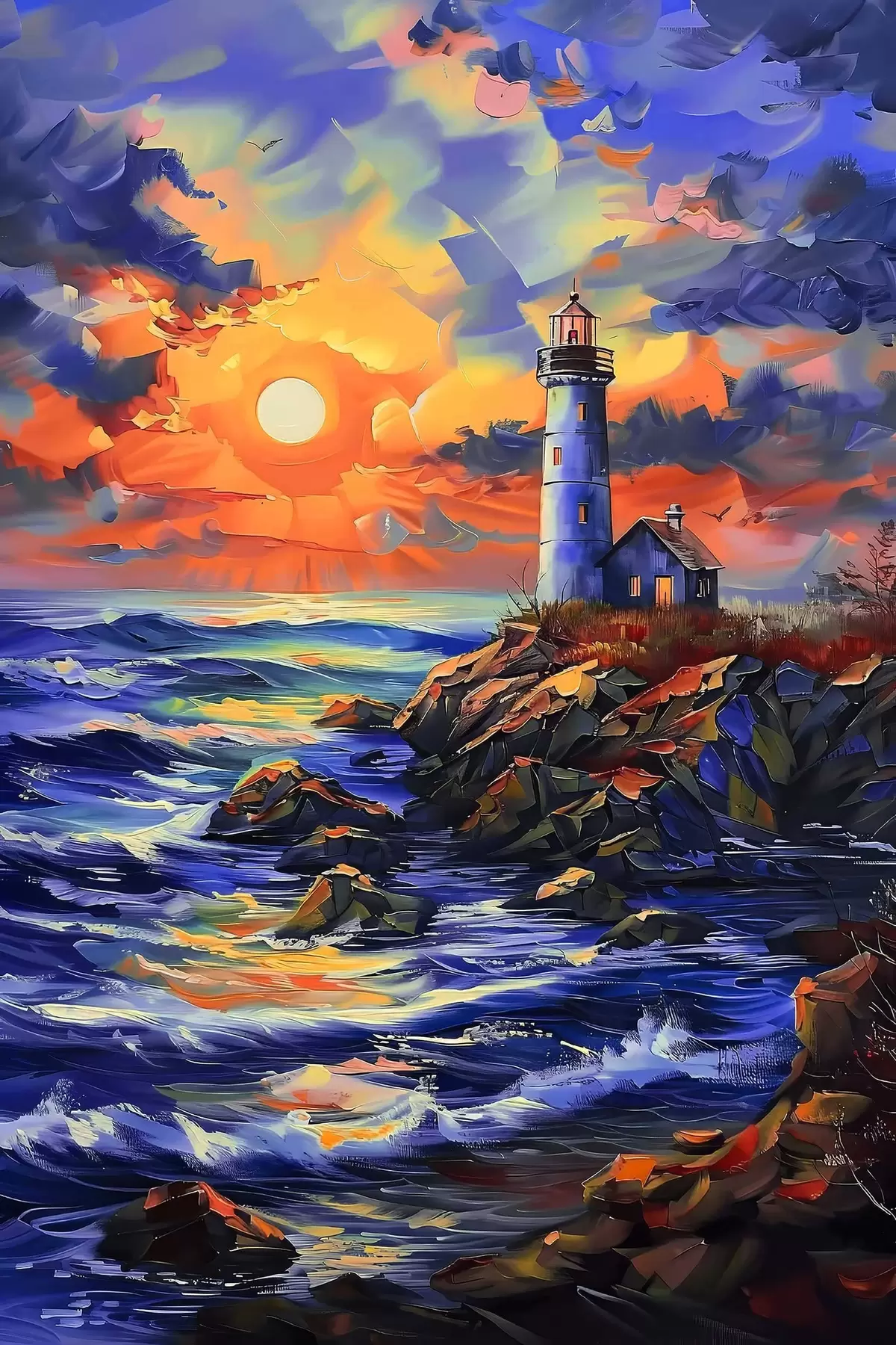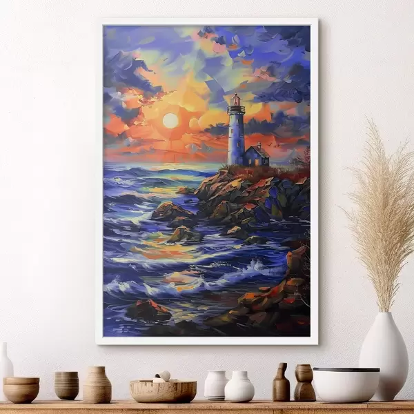 Plakatas Švyturys saulėlydžio metu prie jūros Ne f38150