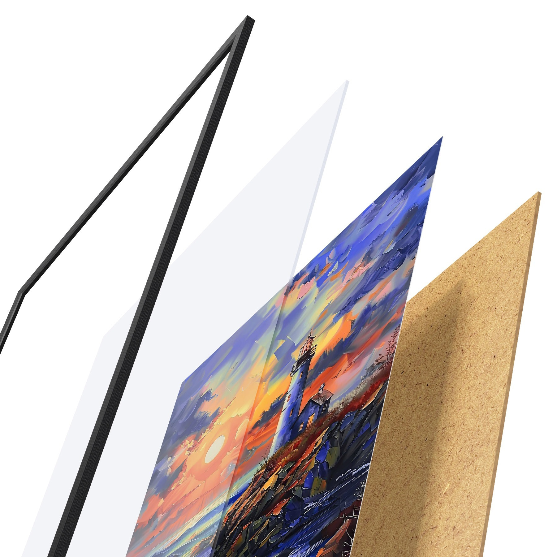 Plakatą sudaro rėmas, pleksiklas, atspausdintas vaizdas ir medžio drožlių plokštės pagrindas. Plakatą galima iš karto pakabinti ant sienos dėl kitoje pusėje esančių laikiklių.