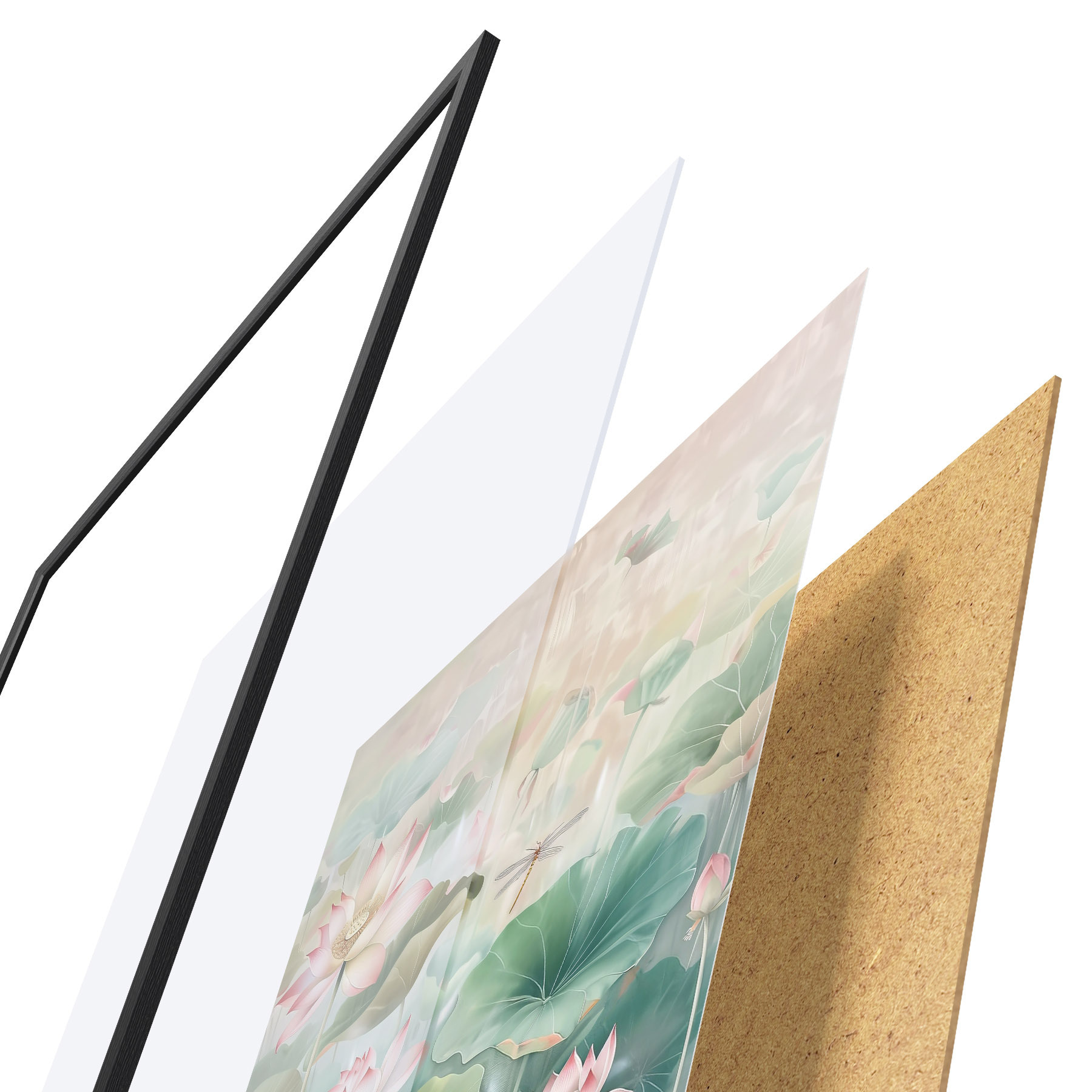 Plakatą sudaro rėmas, pleksiklas, atspausdintas vaizdas ir medžio drožlių plokštės pagrindas. Plakatą galima iš karto pakabinti ant sienos dėl kitoje pusėje esančių laikiklių.