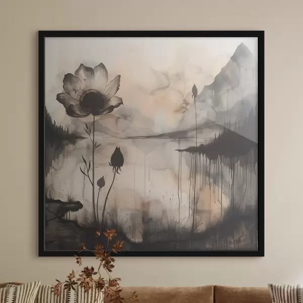 Plakatas Gėlių ir ežero vaizdas Ne f38161