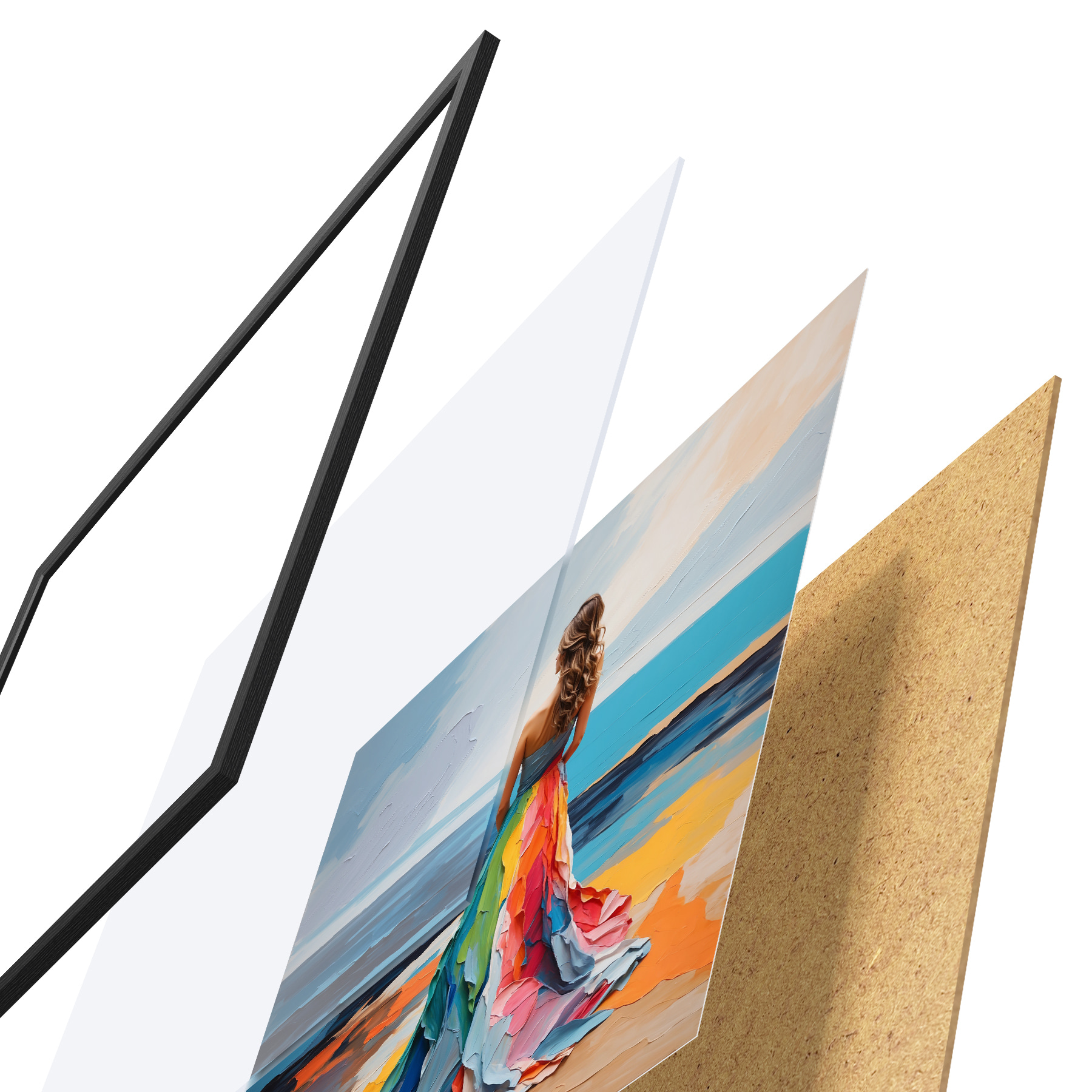 Plakatą sudaro rėmas, pleksiklas, atspausdintas vaizdas ir medžio drožlių plokštės pagrindas. Plakatą galima iš karto pakabinti ant sienos dėl kitoje pusėje esančių laikiklių.