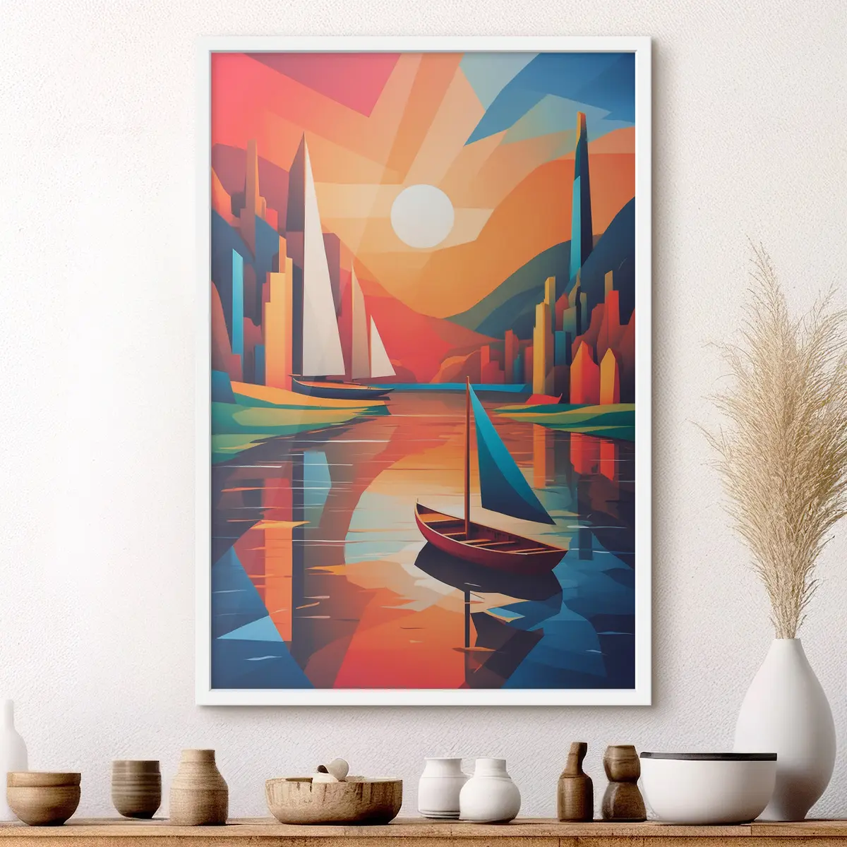 Plakatas Laivas upėje. Vektorinė grafika f38179